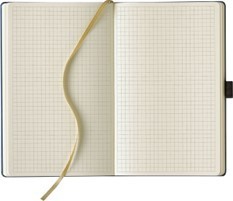 - Finishing: Bound, one bookmark beige, with elastic band, utensil pocket and a loop for a writing utensil