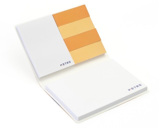 The sticky note set contains two sticky note pads with 50 sheets each and index strips with 50 sheets each.